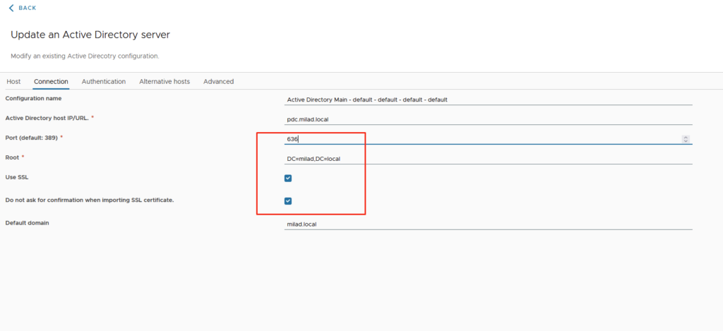 I realized that the problem was caused by using LDAP over port 389, so I need to switch the configuration to LDAPS and use port 636 instead